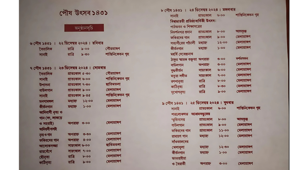 ২০২৪ সালের পৌষমেলার সময়সূচি